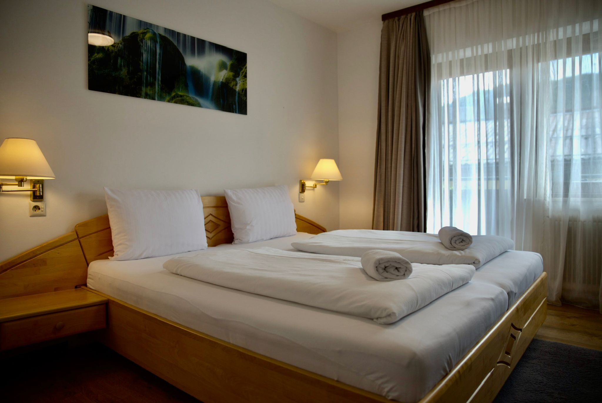 Mieszkamy w pensjonacie, w którym mamy do dyspozycji dwuosobowe pokoje z prywatnymi łazienkami i pojedynczymi lub podwójnymi łóżkami. Mówiąc w skrócie: pełen komfort.